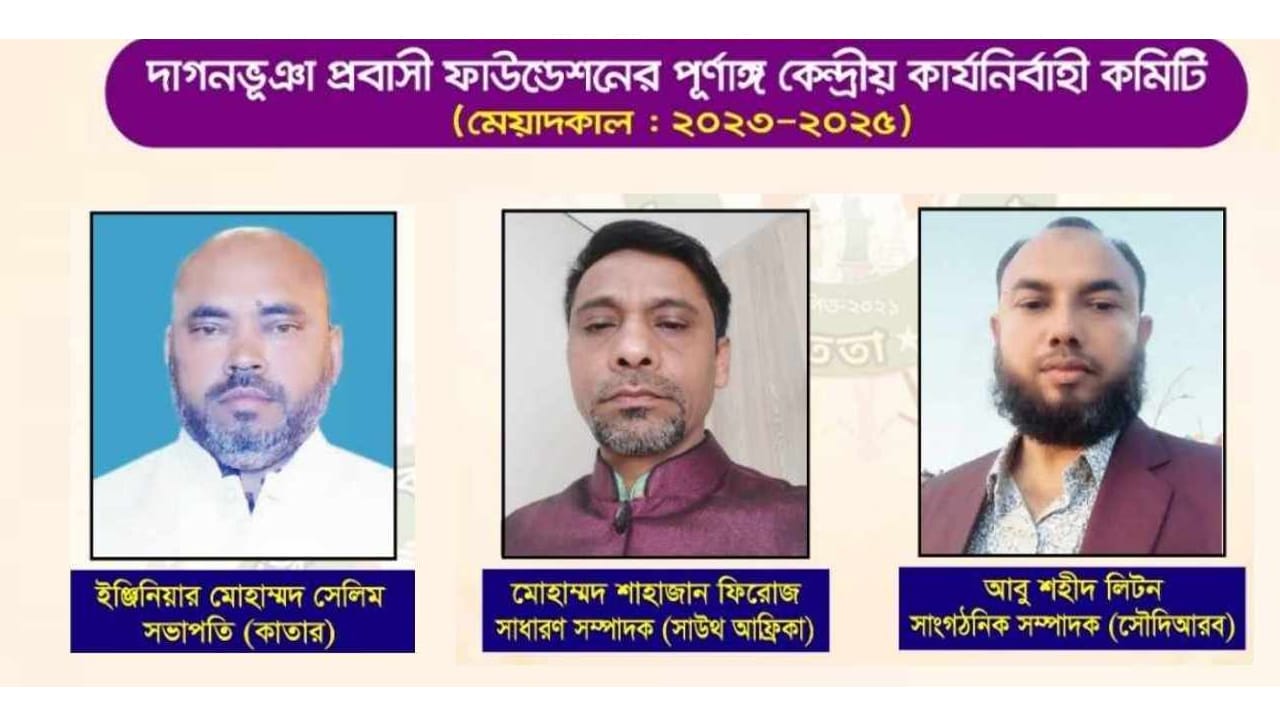 পৌর মেয়র ওমর ফারুক খান দাগনভুঞা প্রবাসী ফাউন্ডেশনের ২০২৩-২০২৫ সালের কেন্দ্রীয় কমিটির নাম ঘোষণা করেন। কাতার প্রবাসী ইঞ্জিনিয়ার মো: সেলিমকে সভাপতি, ইতালী প্রবাসী ইনামুল হক রিমনকে সিনিয়র সহ-সভাপতি, সাউথ আফ্রিকা প্রবাসী মো: শাহজাহান ফিরোজকে সাধারণ সম্পাদক ও সৌদি আরব প্রবাসী আবু শহীদ লিটনকে সাংগঠনিক সম্পাদক পদে নির্বাচন করেন ১০১ সদস্য বিশিষ্ট কার্যনিবার্হী কমিটি ঘোষণা করেন।