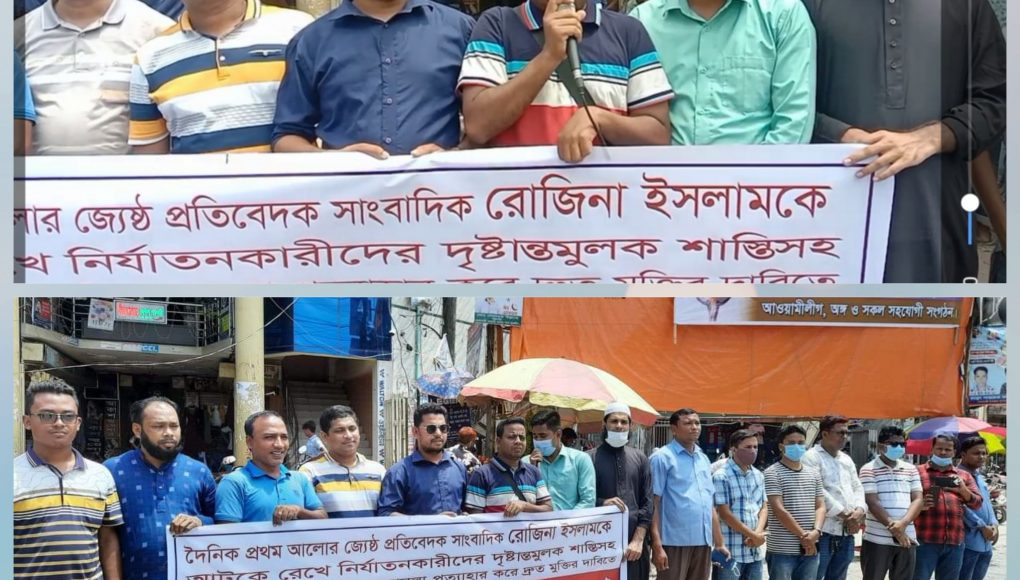 সাংবাদিক রোজিনা ইসলামকে হেনস্তা-গ্রেপ্তারের প্রতিবাদে ও মুক্তির দাবিতে সোনাগাজীতে সাংবাদিকদের মানববন্ধন ও প্রতিবাদ সমাবেশ