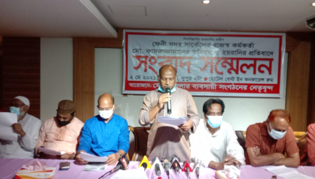 কাস্টমস কর্মকর্তা কামরুজ্জামান’র দুর্নীতির বিরুদ্ধে ফেনীতে বিভিন্ন ব্যবসায়ী সংগঠনের সংবাদ সম্মেলন